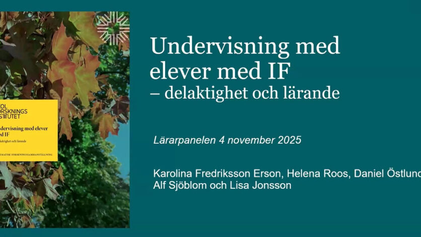 Karolina Fredriksson Erson, fil.dr och projektledare, berättar om hur undervisningen med elever med intellektuell funktionsnedsättning kan utformas. Utgångspunkt är den systematiska forskningssammanställning Undervisning med elever med IF som Skolforskningsinstitutet har publicerat.